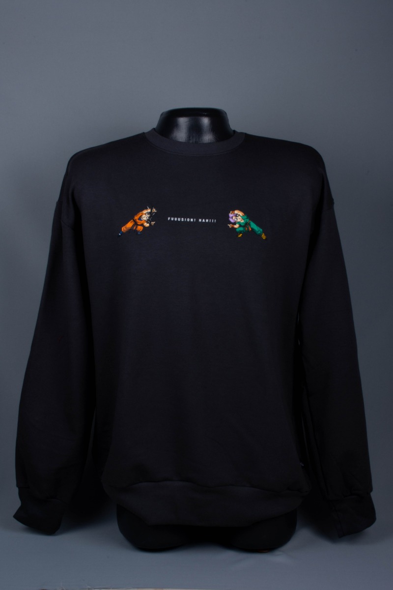 Embark on a fusion-fueled adventure with our extraordinary Gotenks sweater! 🐉💥 Featuring a captivating back print of the powerful fusion of Trunks and Goten, this sweater is all about unleashing their combined might. Surrounding Gotenks, bold Japanese letters add an authentic vibe. On the front, Trunks and Goten strike iconic poses, setting the stage for their epic fusion. Crafted with utmost care from a 90% cotton blend, this comfy sweater in size M fits like a charm for various body types. Cloaked in sleek black, this sweater brings a sense of mystery and power. Get ready to rock the fusion phenomenon and show off your Dragon Ball Z love with this remarkable piece! 🌟🔥