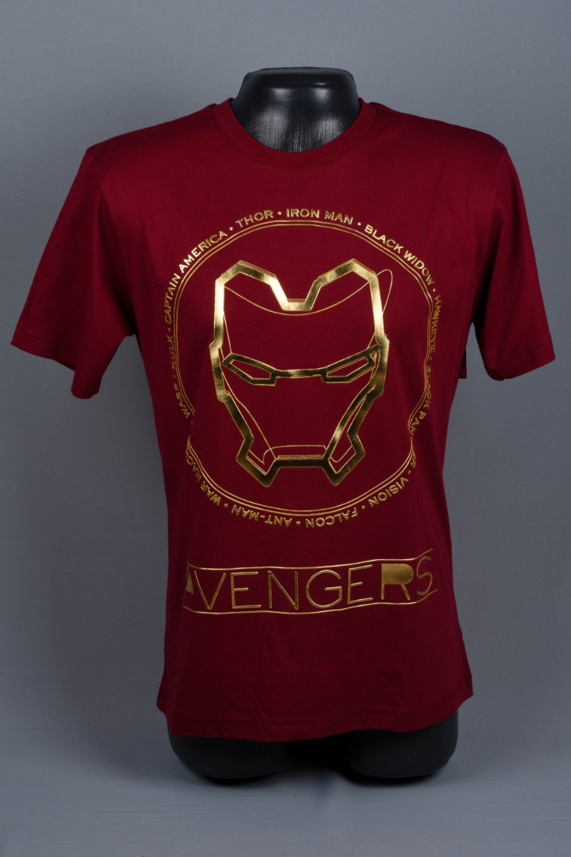 Embrace your inner hero with our top-notch t-shirt featuring Iron Man’s iconic visage. The high-quality front print highlights Iron Man’s detailed golden outline, exuding power and strength. Surrounded by the names of fellow Avengers, the design immerses you in the superhero universe, while “Avengers” in golden letters adds an authentic touch. Crafted with precision, the tee boasts a premium 90% cotton blend for ultimate comfort and durability. Sized perfectly at M, this maroon masterpiece honors the Marvel saga, encouraging you to channel your inner superhero.