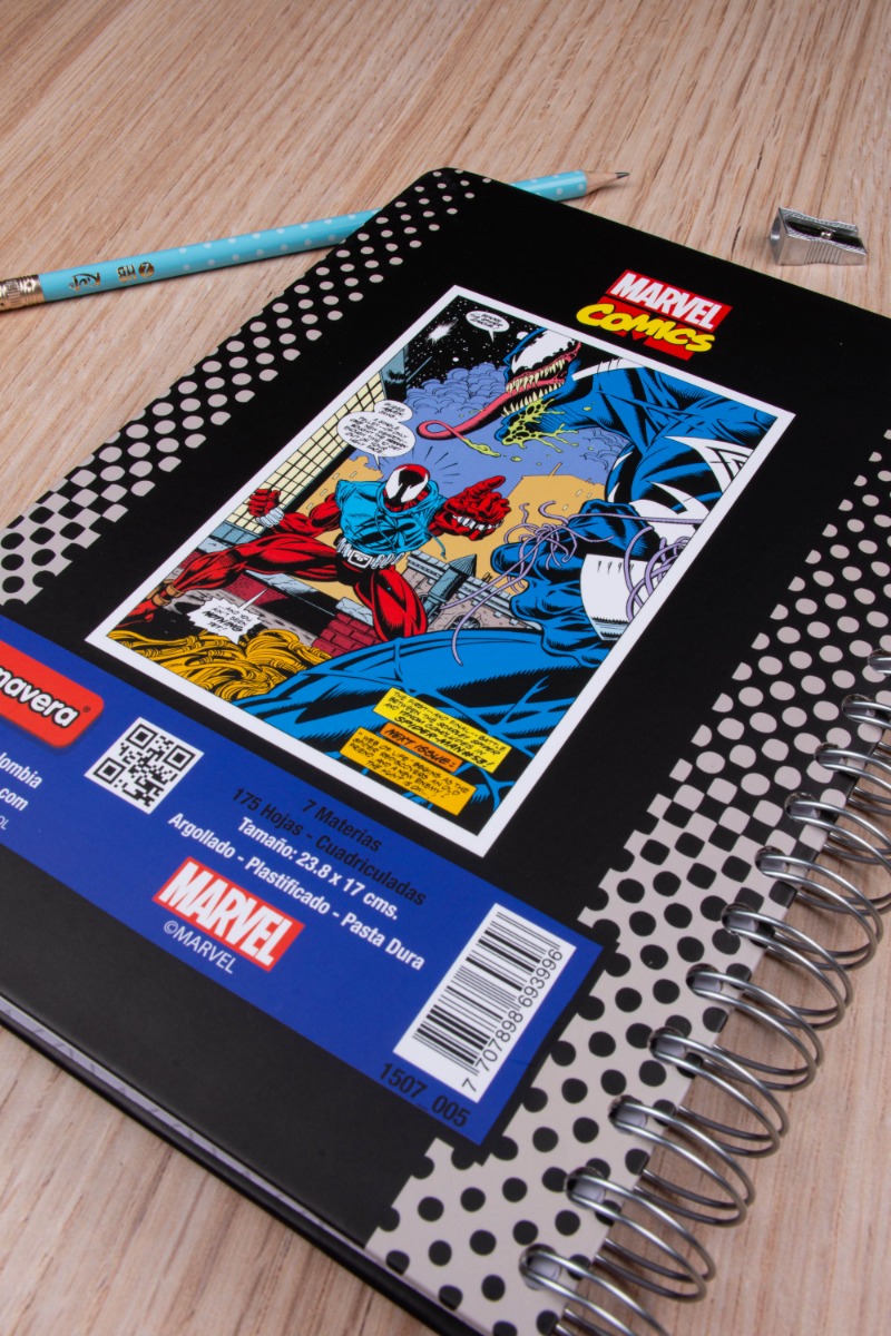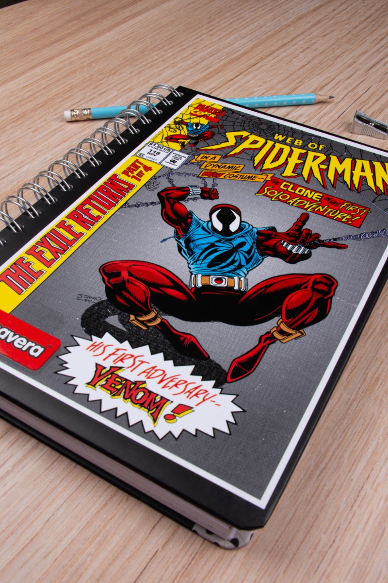 Dive into Spidey’s world with this super cool notebook! 🕷️ The front cover is like a comic book explosion, with Spiderman in all his web-slinging glory and that classic “Web of Spiderman” font. 📚🦸‍♂️ Flip it over and bam, you’ve got a snippet of an epic comic page where Spiderman faces off against the formidable Venom. 😱🦠 And with its spiral binding, tough hardcover, and graph paper, this notebook is ready for all your notes, doodles, and maybe even your own superhero tales. With a whopping 175 pages, you’ve got room for all your creative ideas—up to 7 subjects’ worth! 🎨📝📖